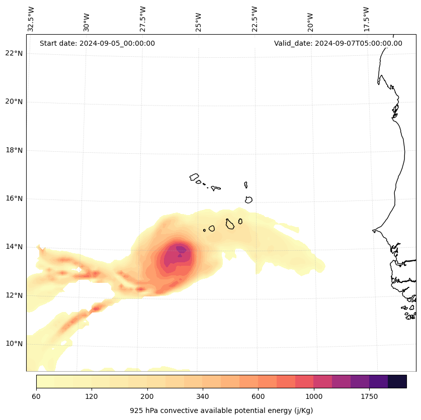 - Maximum CAPE (J/Kg)