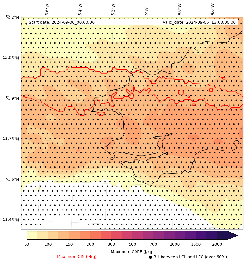 • Maximum CAPE (J/Kg)