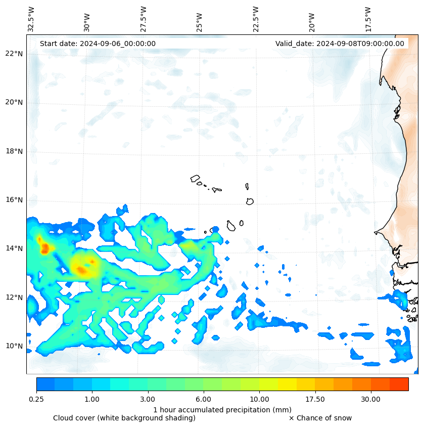 - Snow mixing ratio (g kg¯¹)