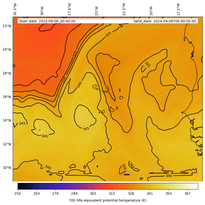 - Equivalent Potential Temperature (K)