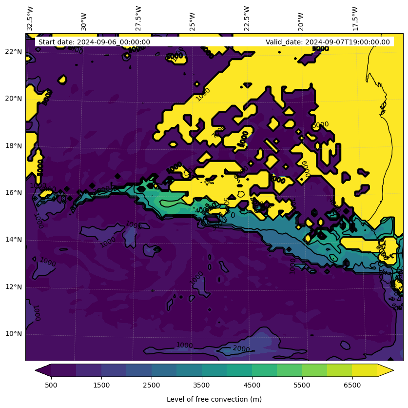 - Level of free convection (m)