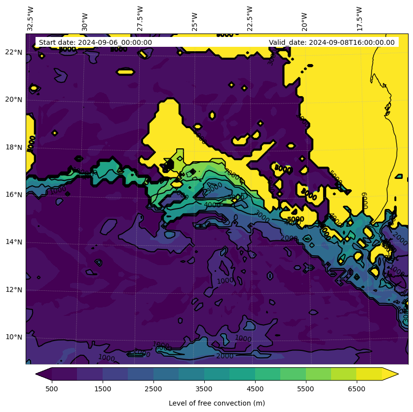 - Level of free convection (m)