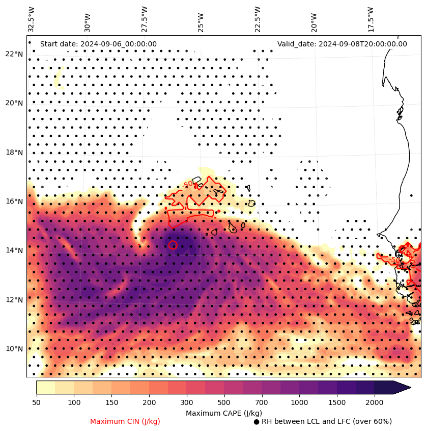 • Maximum CAPE (J/Kg)