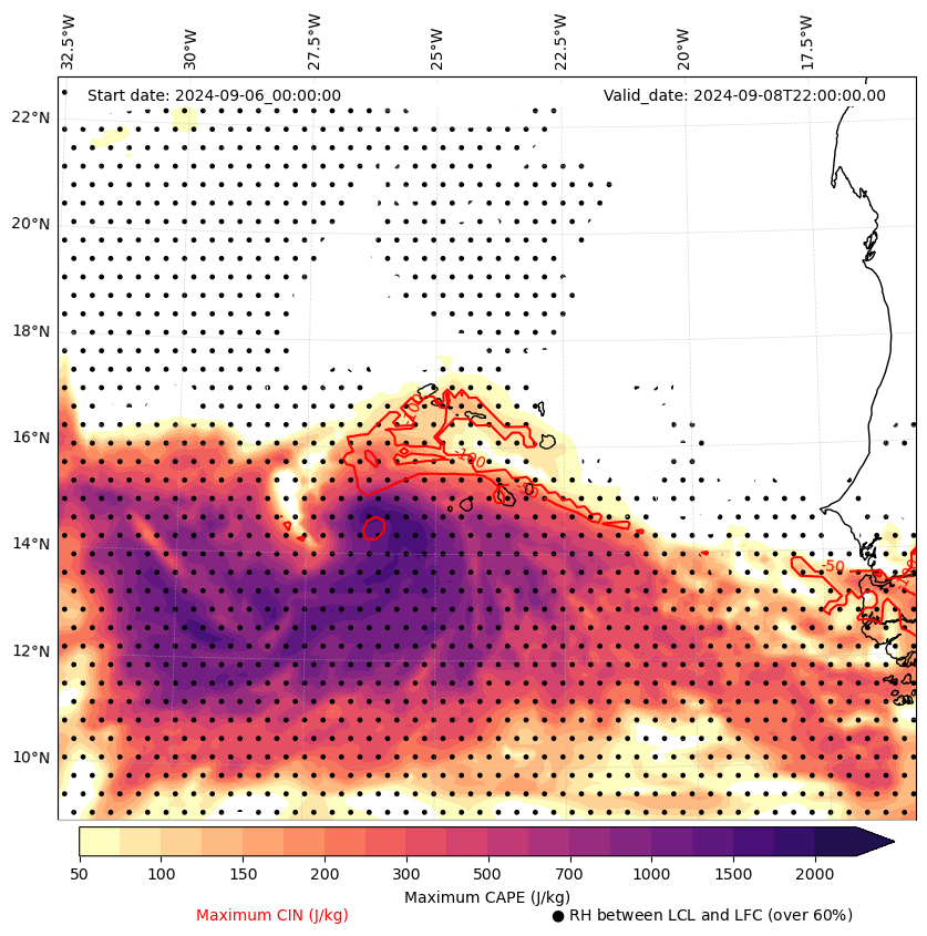• Maximum CAPE (J/Kg)