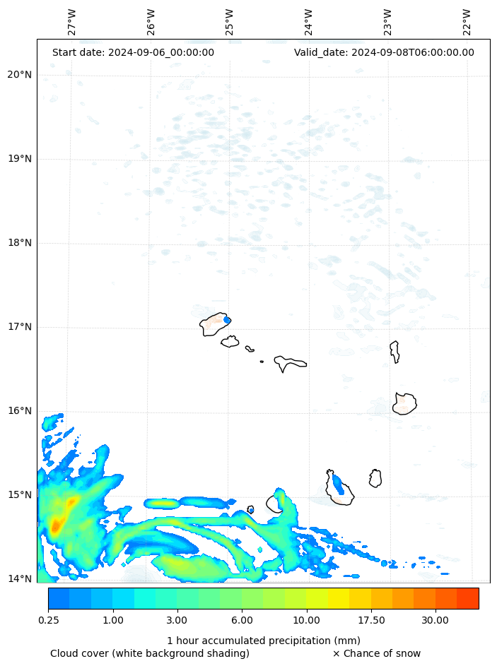 - Snow mixing ratio (g kg¯¹)