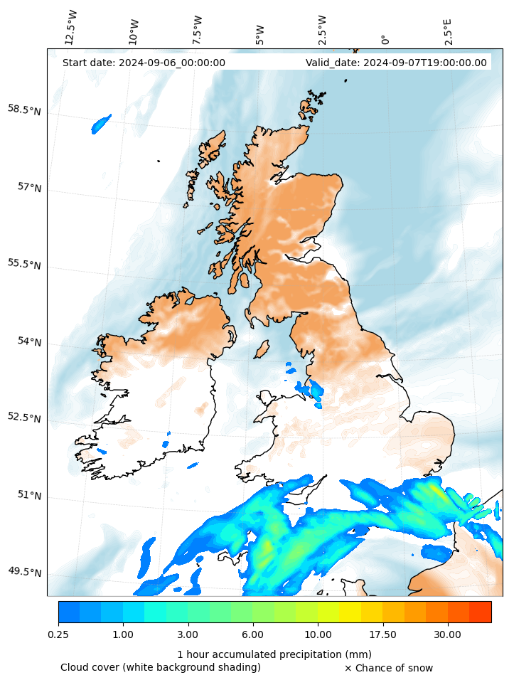 - Snow mixing ratio (g kg¯¹)