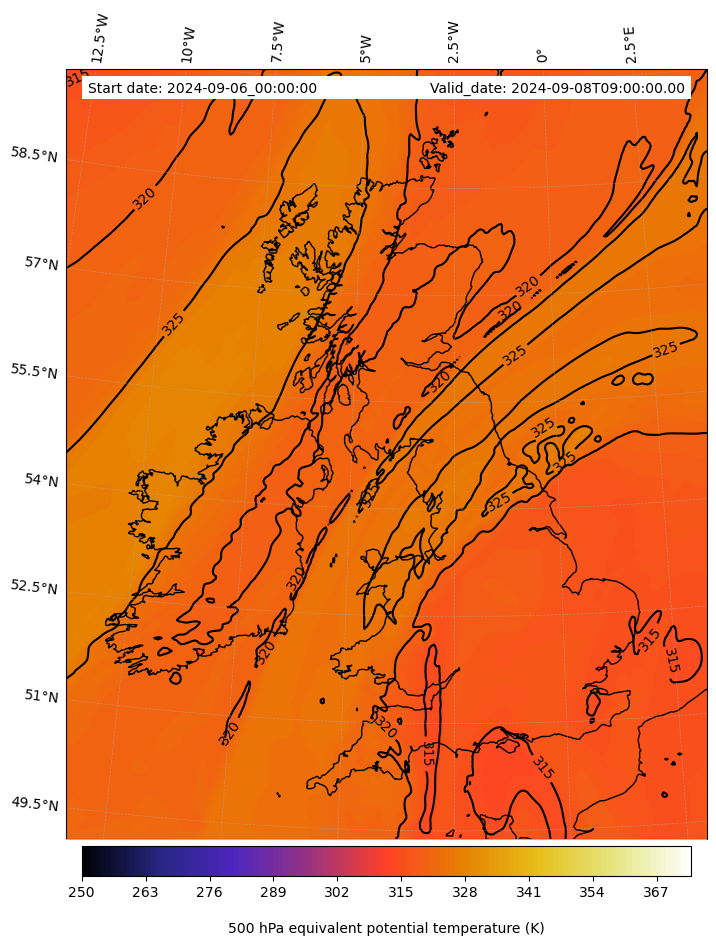- Equivalent Potential Temperature (K)