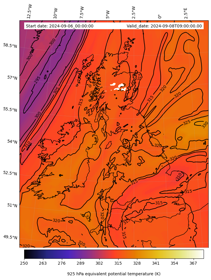 - Equivalent Potential Temperature (K)