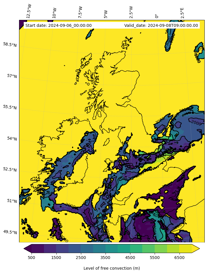 • Level of free convection (m)