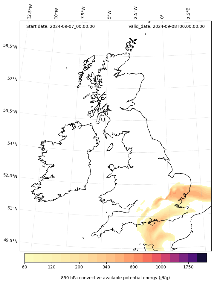 - Maximum CAPE (J/Kg)