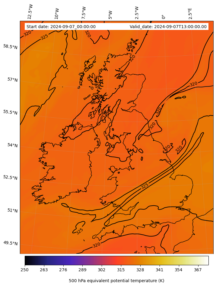 - Equivalent Potential Temperature (K)