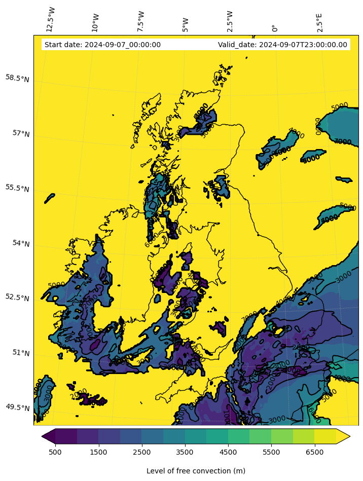 • Level of free convection (m)