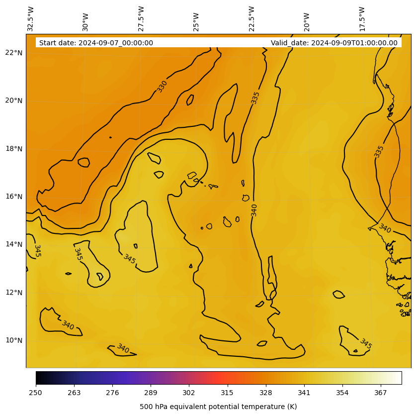 - Equivalent Potential Temperature (K)