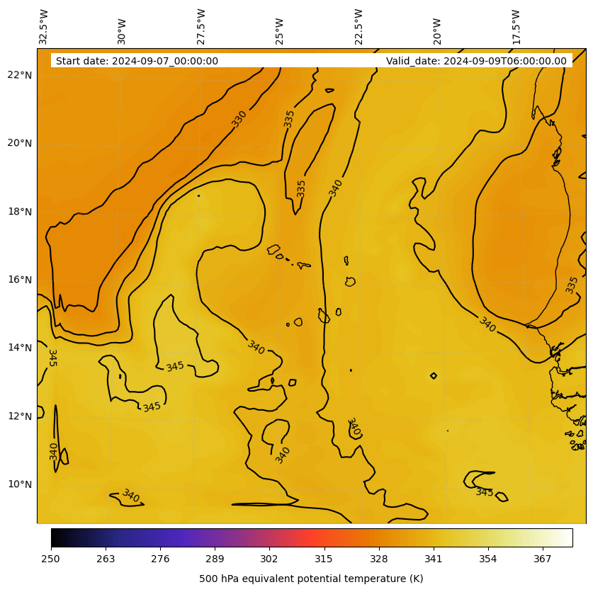 - Equivalent Potential Temperature (K)