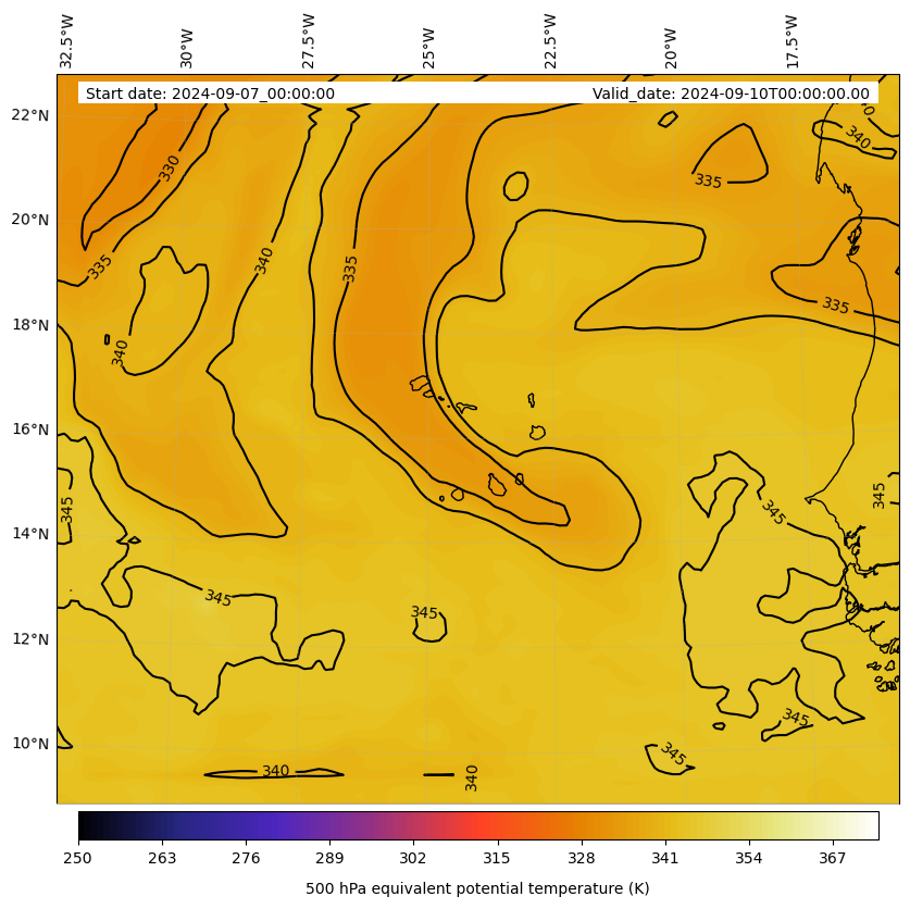 - Equivalent Potential Temperature (K)