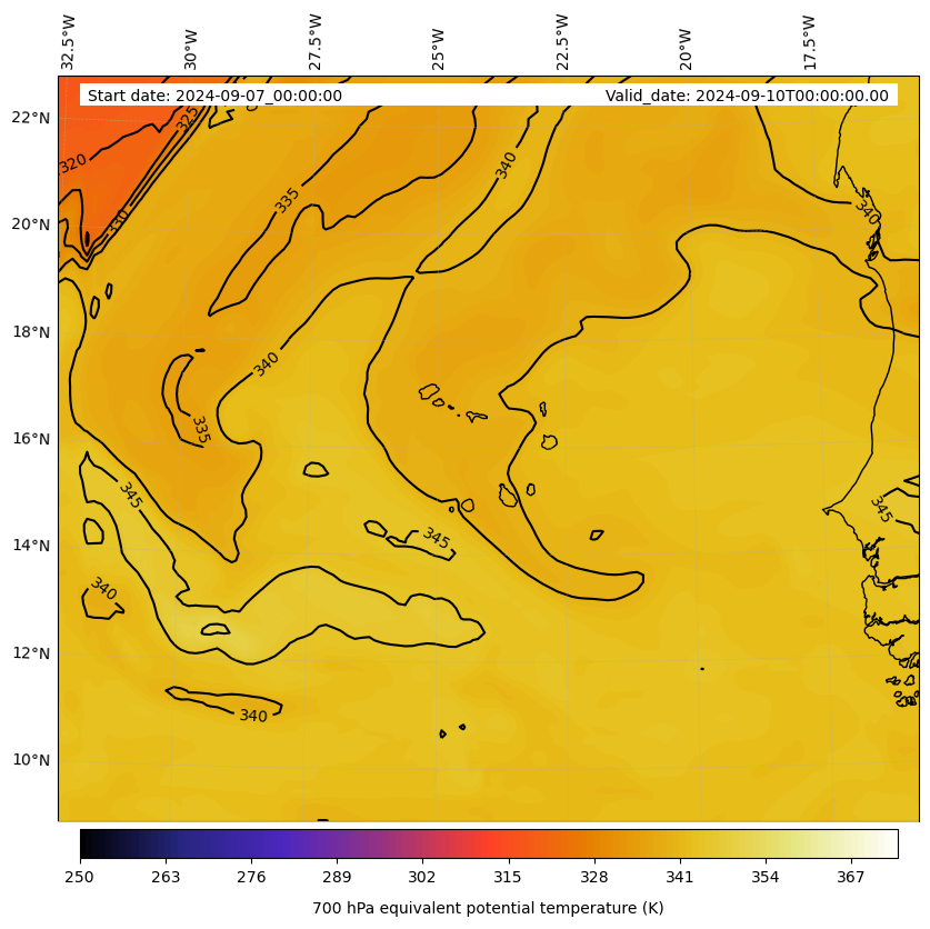 - Equivalent Potential Temperature (K)