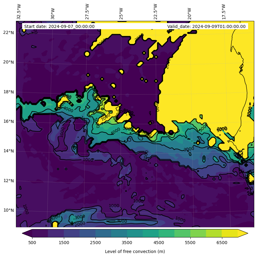 • Level of free convection (m)
