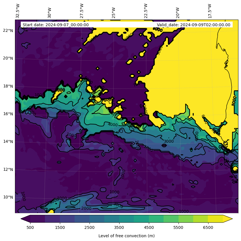 - Level of free convection (m)