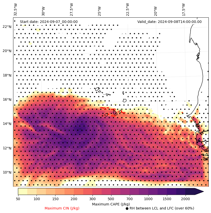 • Maximum CAPE (J/Kg)