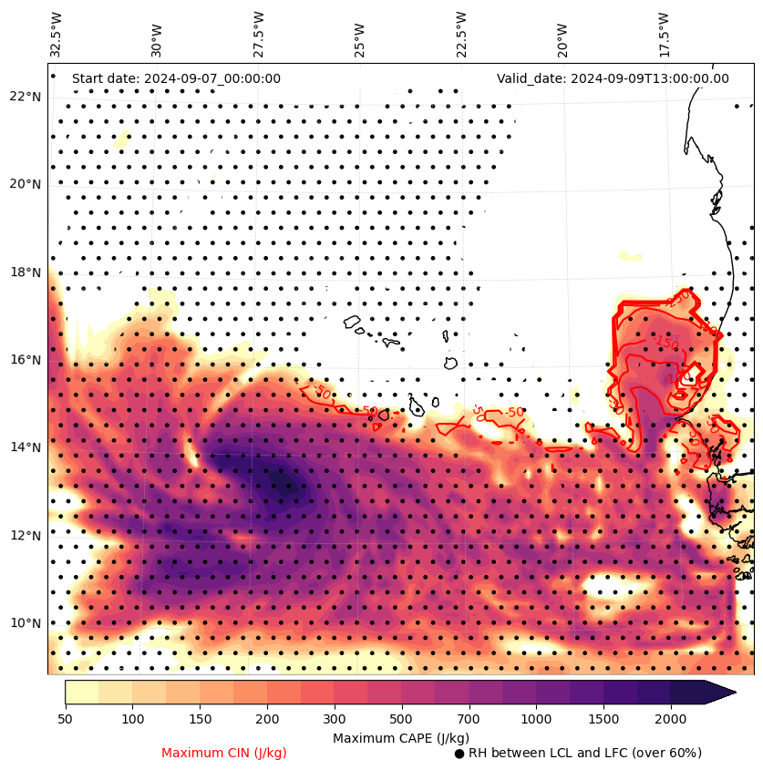 • Maximum CAPE (J/Kg)