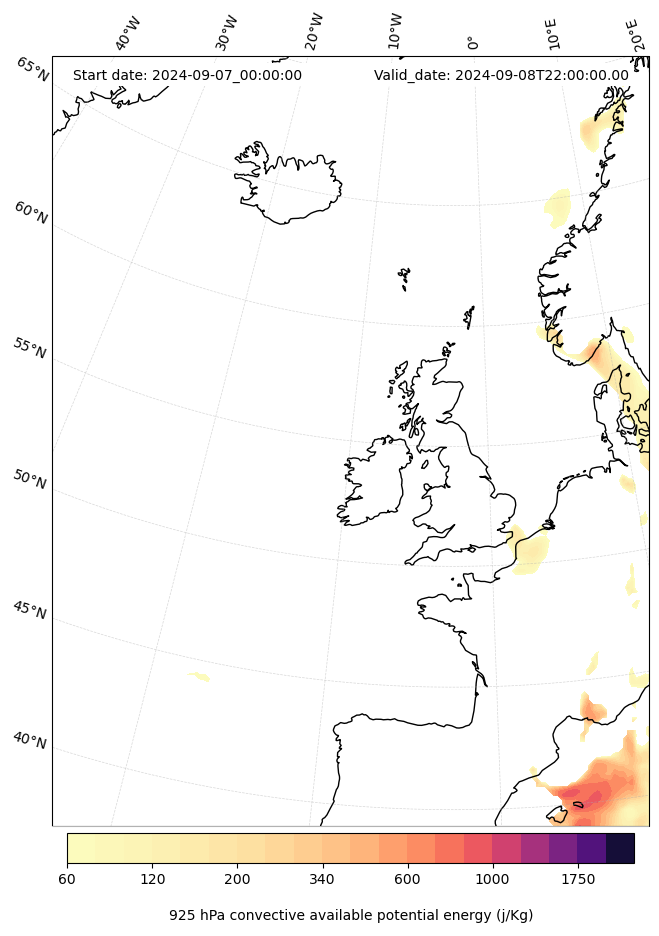 - Maximum CAPE (J/Kg)