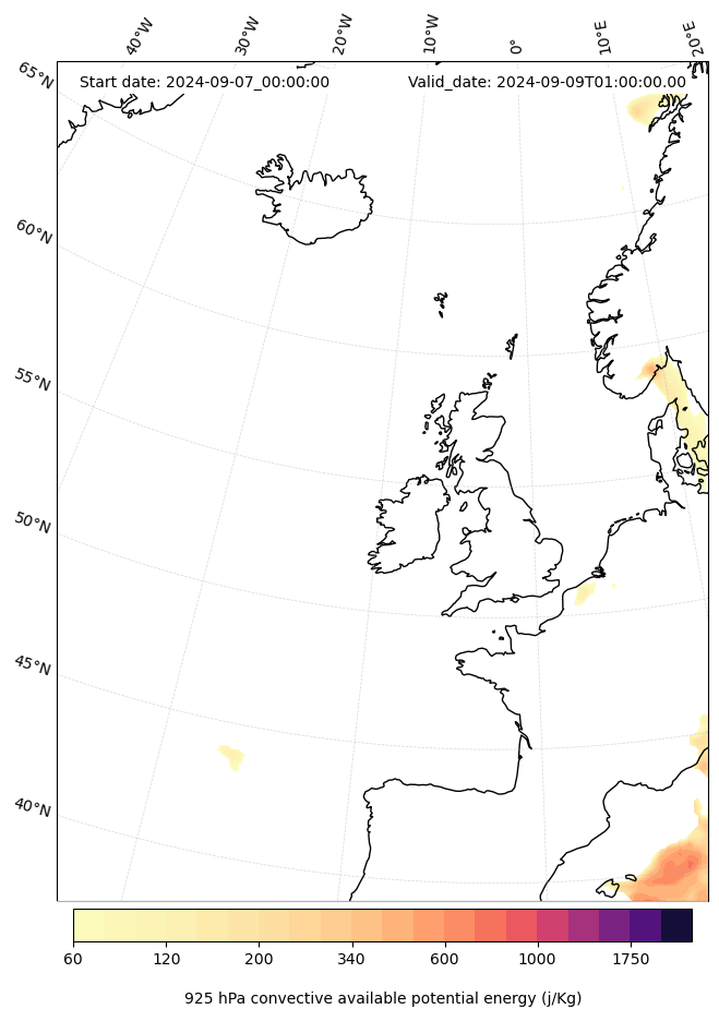 - Maximum CAPE (J/Kg)