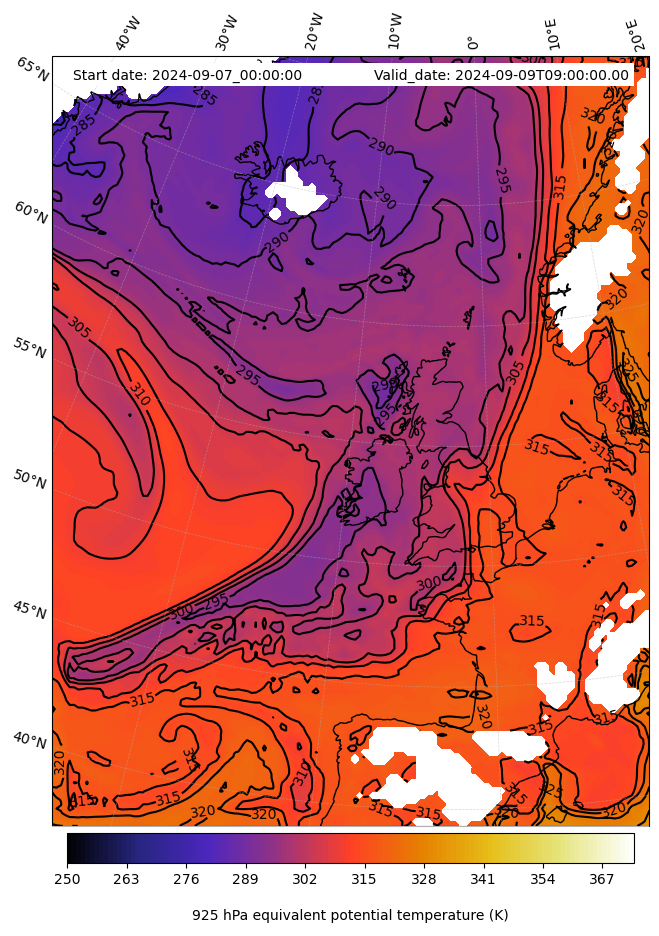 - Equivalent Potential Temperature (K)