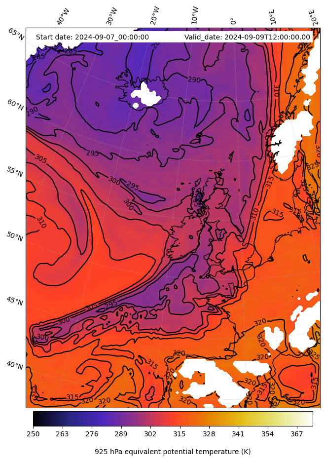 - Equivalent Potential Temperature (K)