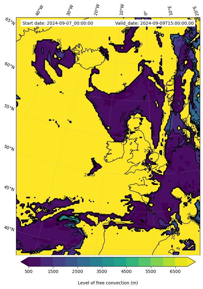 - Level of free convection (m)