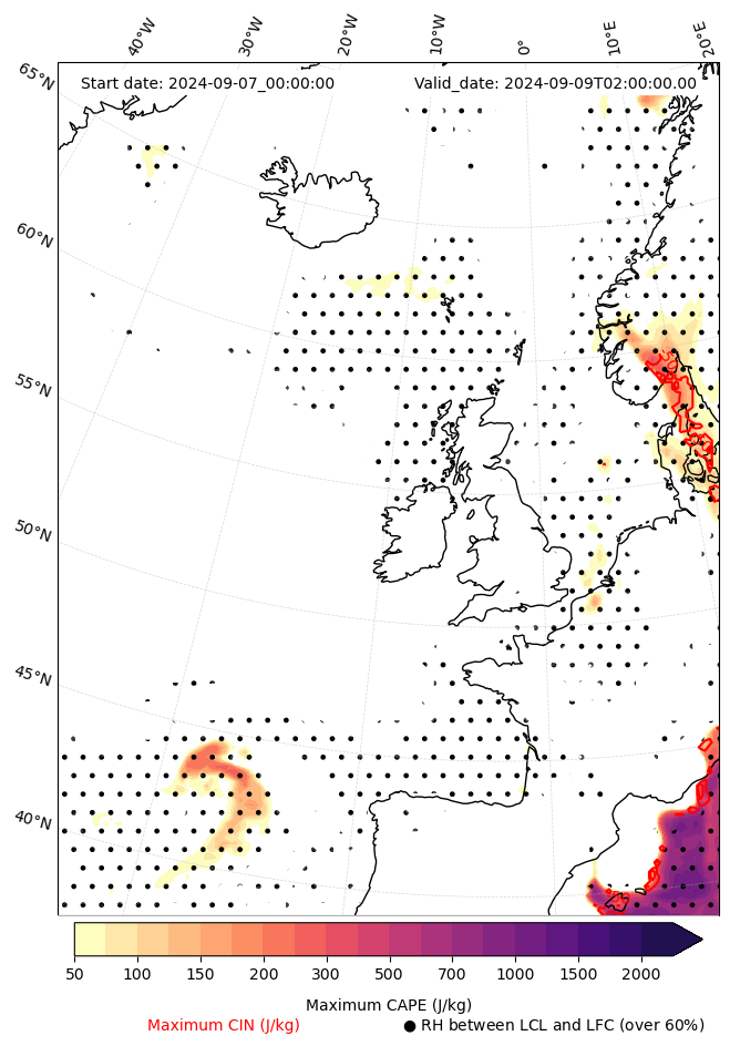 - Maximum CAPE (J/Kg)