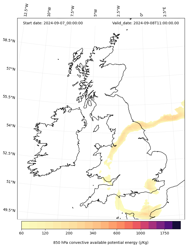 - Maximum CAPE (J/Kg)