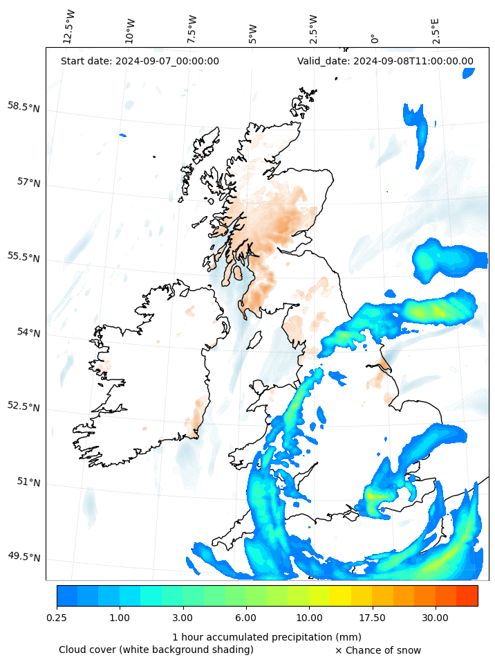 - Snow mixing ratio (g kg¯¹)