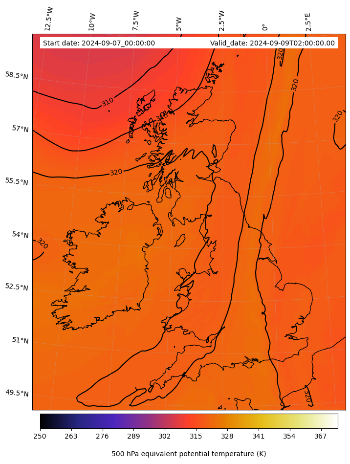 - Equivalent Potential Temperature (K)
