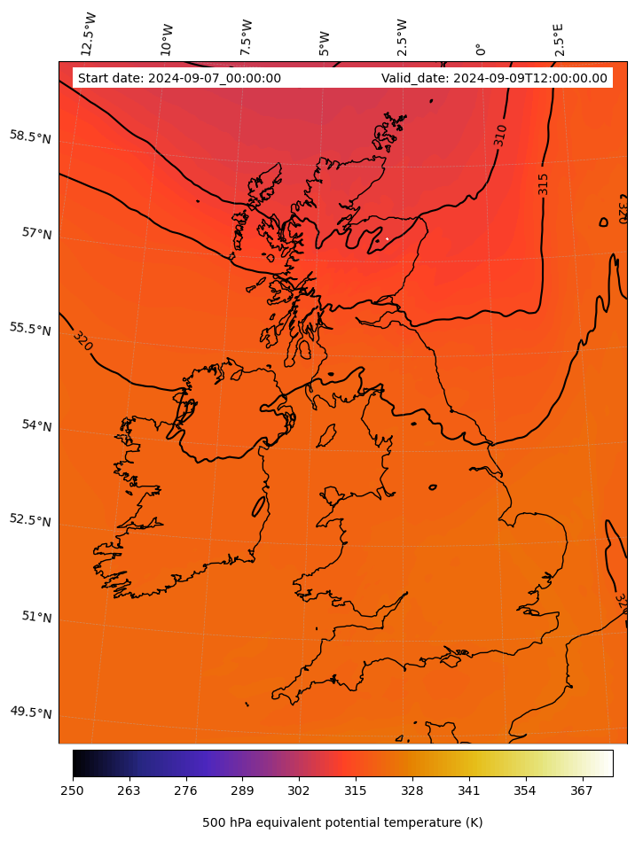 - Equivalent Potential Temperature (K)