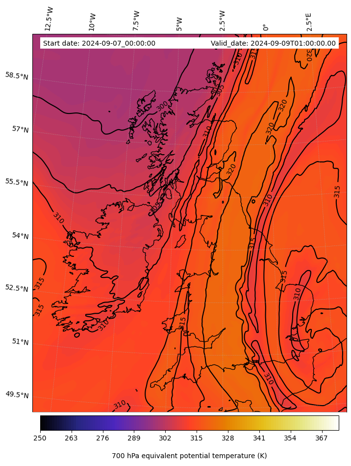 - Equivalent Potential Temperature (K)