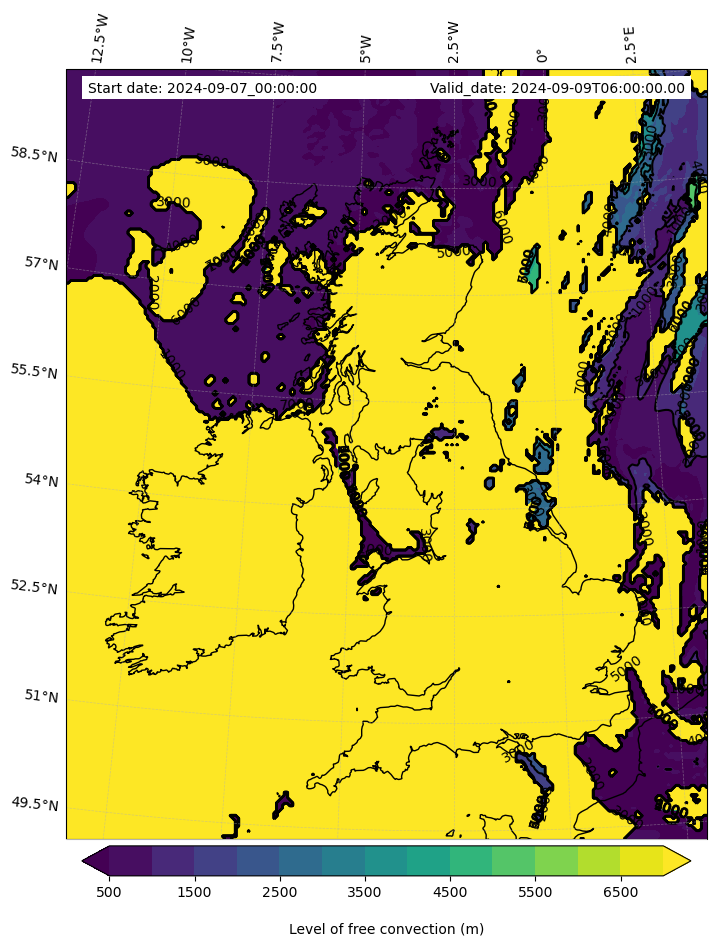 - Level of free convection (m)