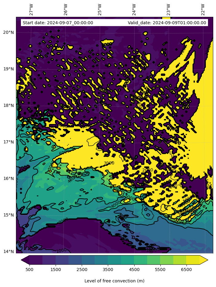 - Level of free convection (m)
