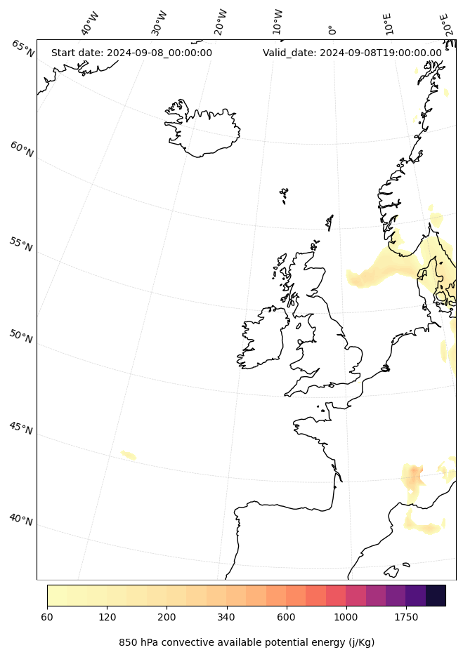 - Maximum CAPE (J/Kg)