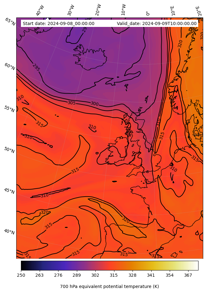 - Equivalent Potential Temperature (K)