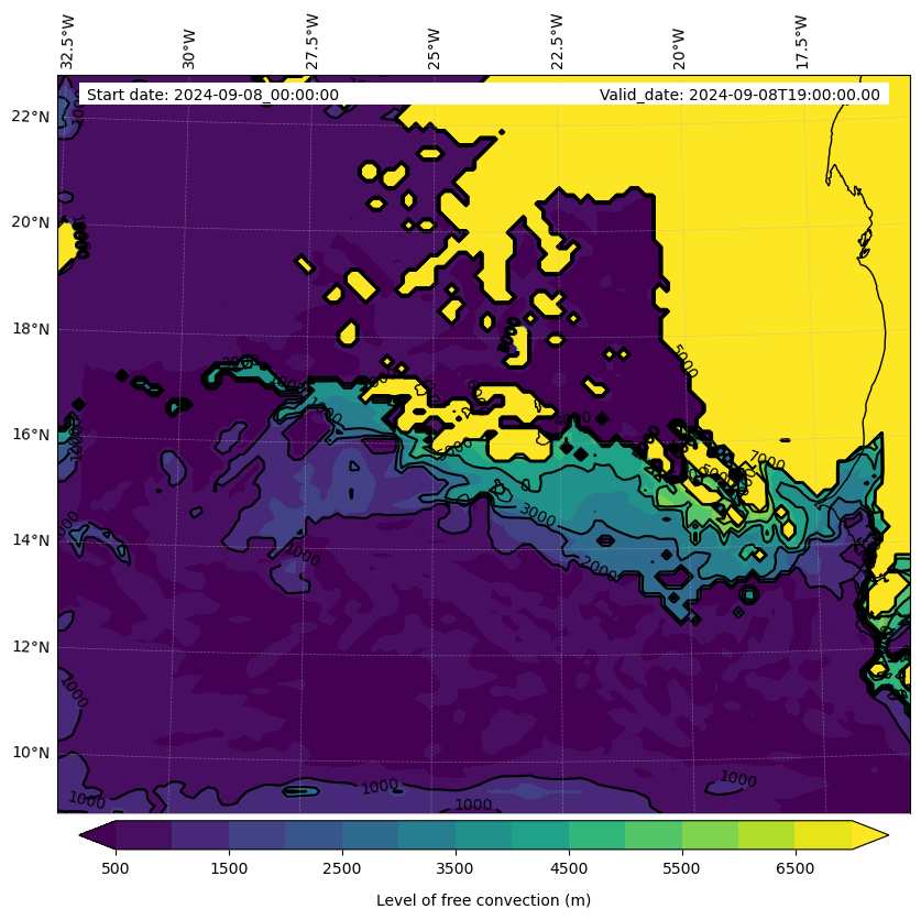 - Level of free convection (m)