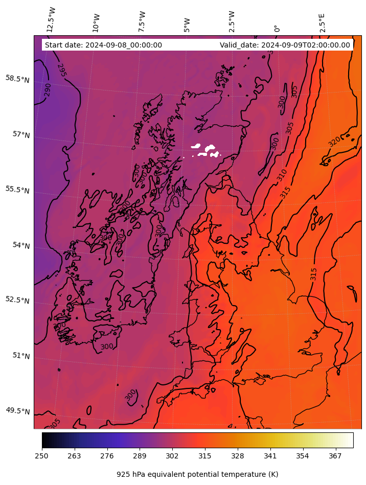 - Equivalent Potential Temperature (K)