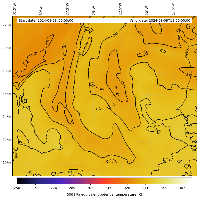 - Equivalent Potential Temperature (K)