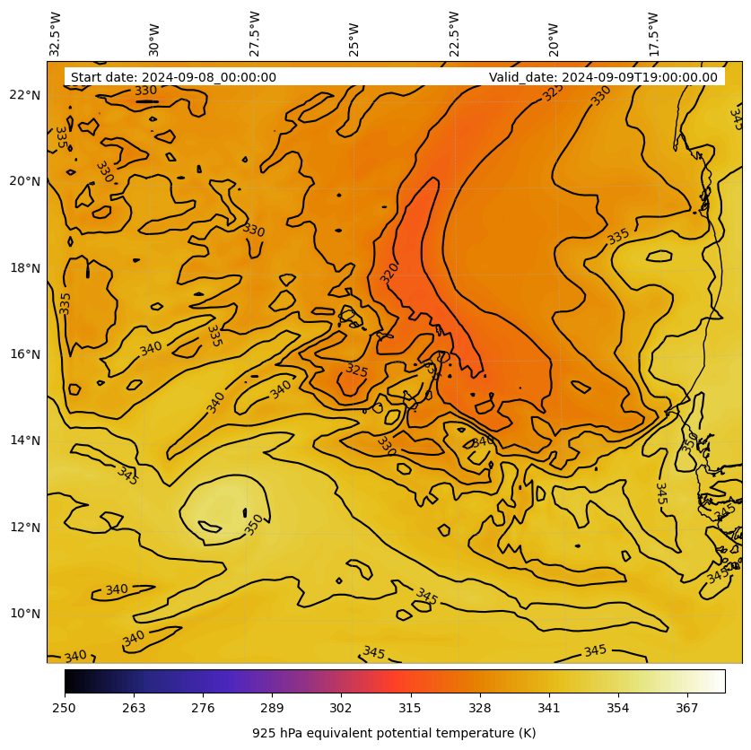- Equivalent Potential Temperature (K)