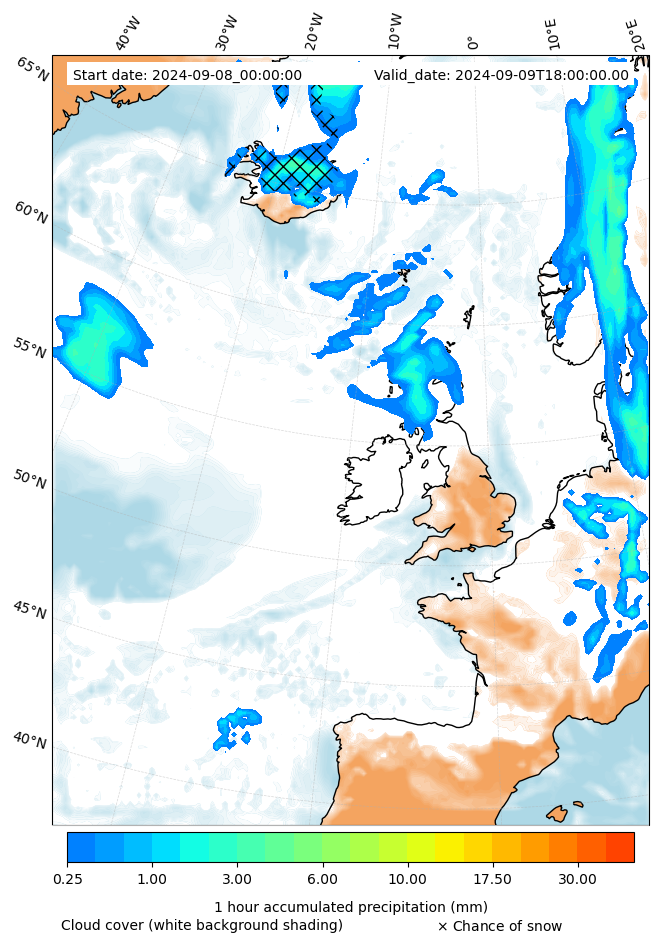 - Snow mixing ratio (g kg¯¹)