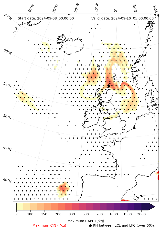- Maximum CAPE (J/Kg)