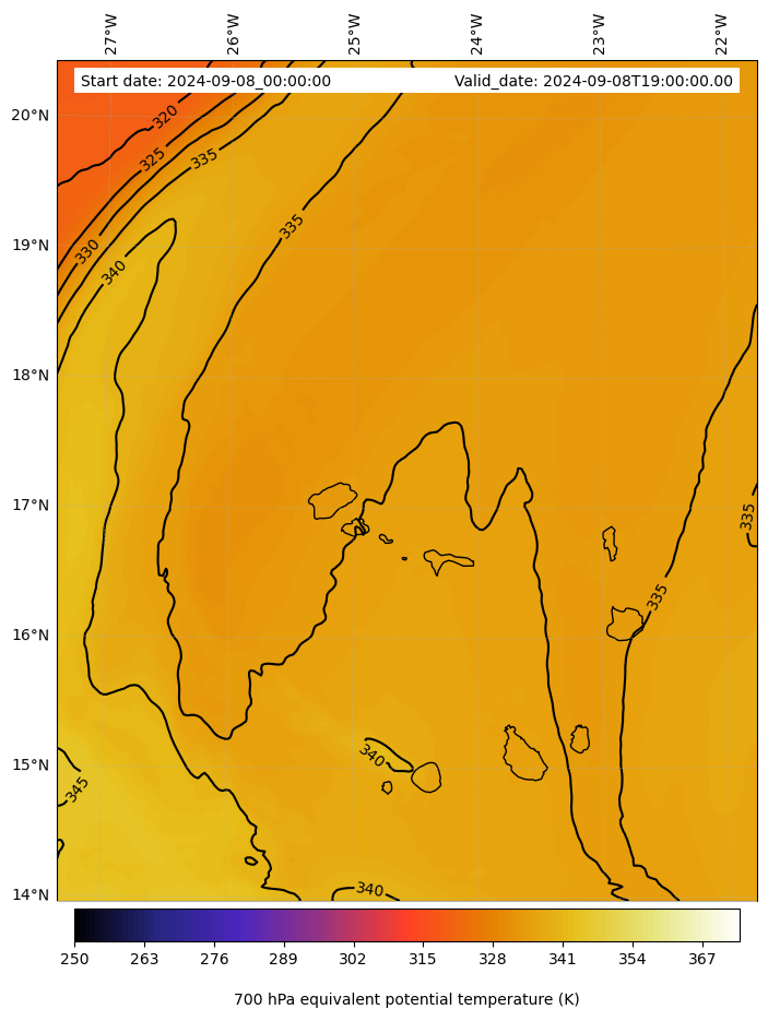 - Equivalent Potential Temperature (K)