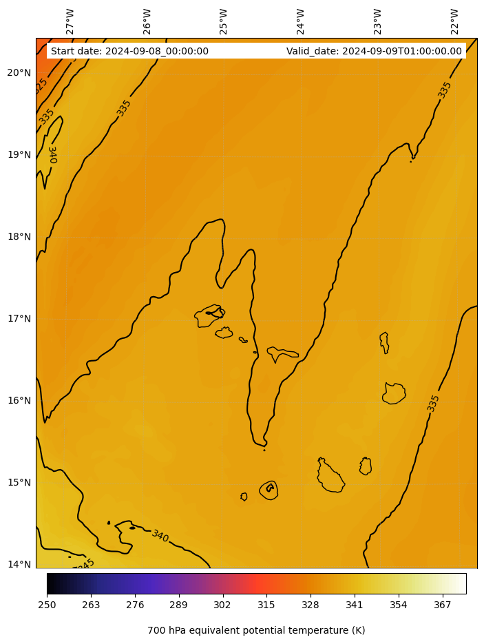- Equivalent Potential Temperature (K)