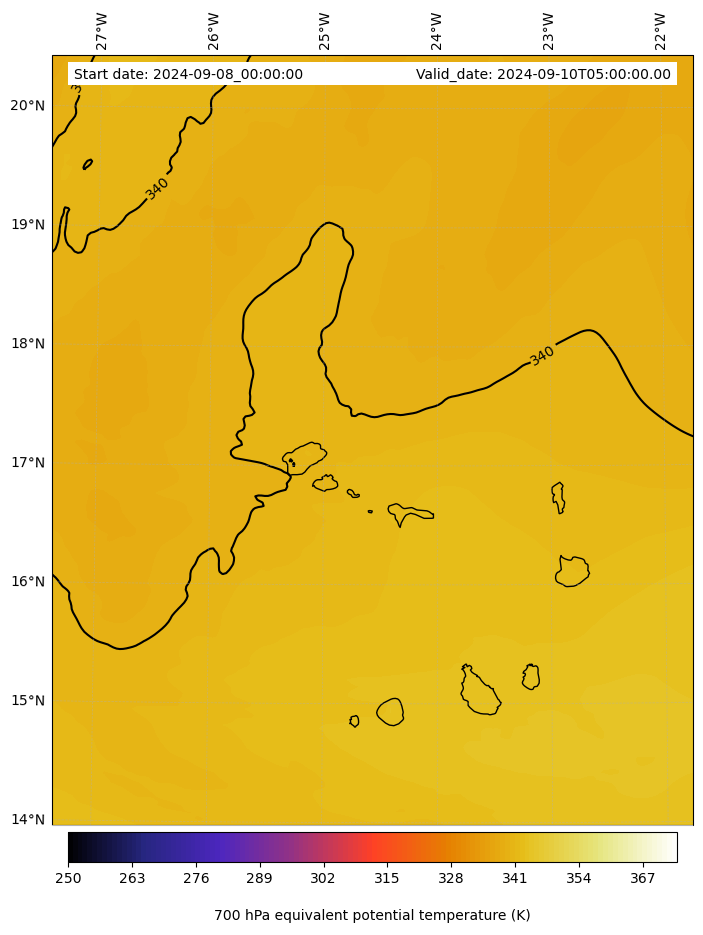 - Equivalent Potential Temperature (K)