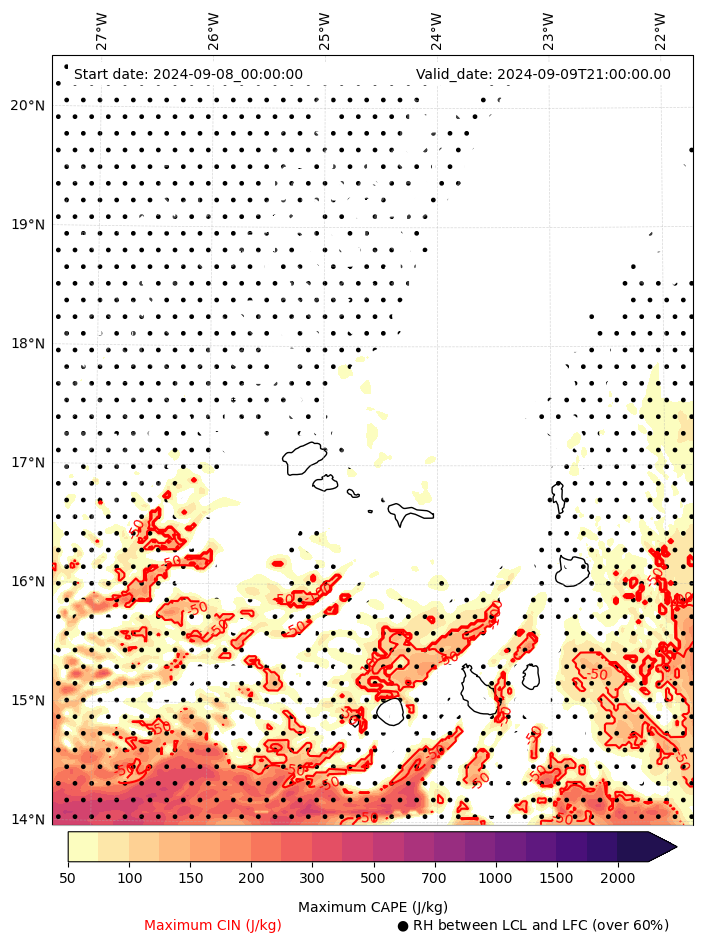 - Maximum CAPE (J/Kg)
