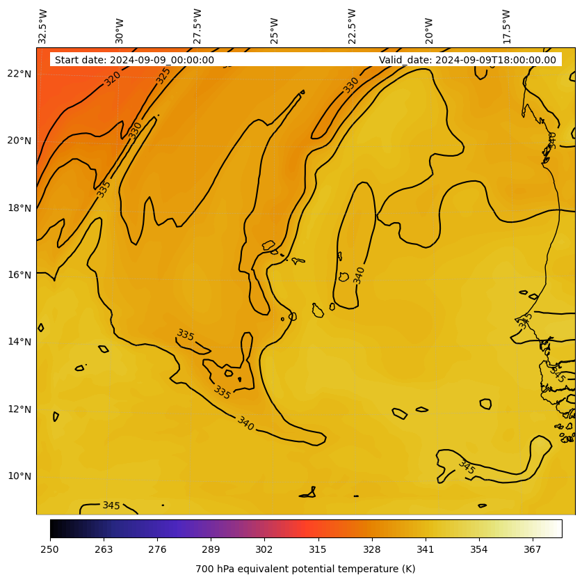 - Equivalent Potential Temperature (K)